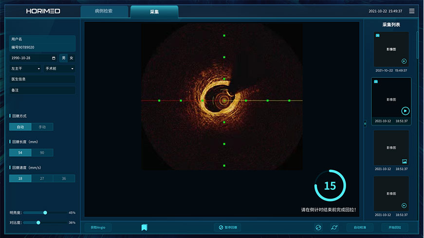 恒宇和藍(lán)藍(lán)設(shè)計(jì)合作,對OCT系統(tǒng)UI操作界面進(jìn)行了創(chuàng)新,采用的UI界面結(jié)合了16:9寬屏優(yōu)勢,搭載了管腔識別、支架識別、三維重建、造影融合等功能,軟件簡潔直觀的界面和多功能算法可幫助術(shù)者快速精準(zhǔn)的做出診療決策,更符合國內(nèi)醫(yī)生界面操作習(xí)慣,從而優(yōu)化醫(yī)生和病人的診療體驗(yàn)。