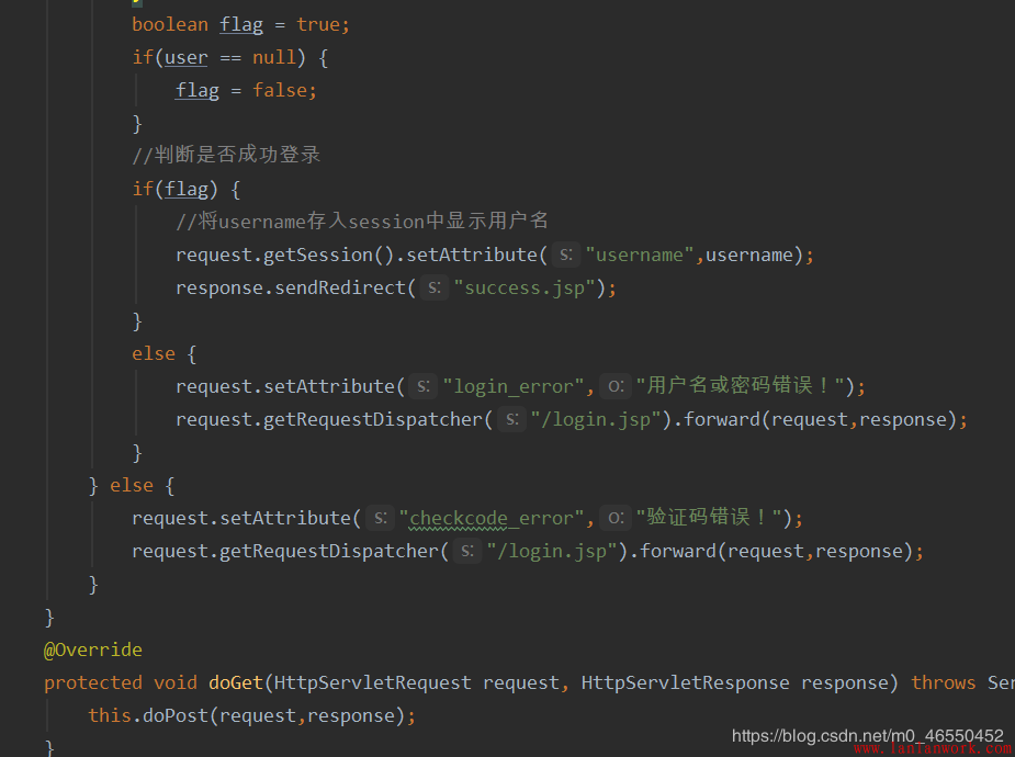 如下圖所示,為了保證servlet層能夠正確接收到界面所展示的驗(yàn)證碼信息,同時(shí)因?yàn)閟ession對(duì)象是項(xiàng)目自生成的,所以我直接獲取session對(duì)象并以類似于鍵值對(duì)的形式將頁(yè)面驗(yàn)證碼信息存入session中。