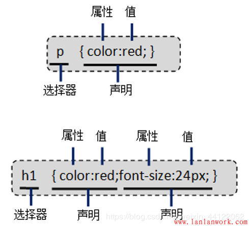CSS的使用規(guī)則由兩部分組成:選擇器和一條或多條聲明。其基本基本語(yǔ)法如下: