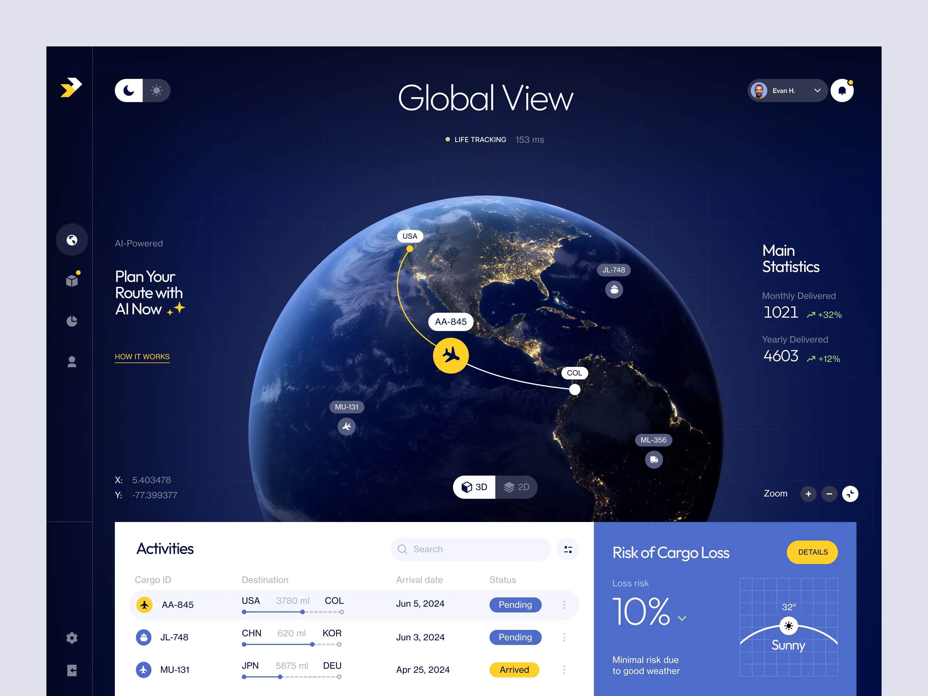 • 科技感與未來感:深色“Global View”用地球與地圖強化了信息的空間感,給人戰(zhàn)略決策的感覺。