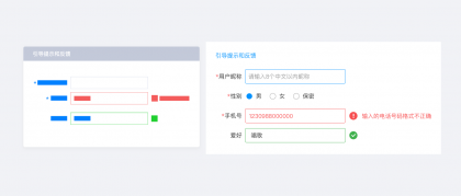 反饋提示發(fā)生在輸入中或輸入后,通過(guò)實(shí)時(shí)判斷信息字段是否符合規(guī)定,進(jìn)行提升反饋,減免錯(cuò)誤。