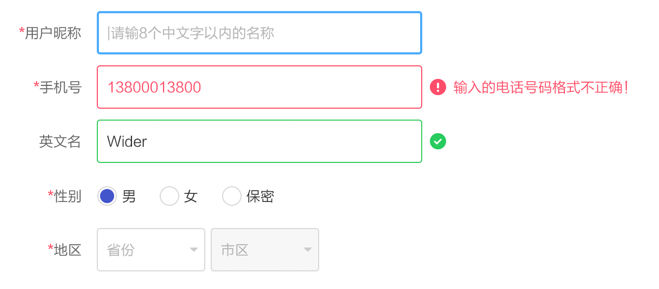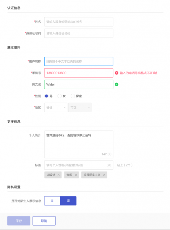 當(dāng)輸入有誤時,盡量避免彈出框提示,可以直接對輸入框設(shè)計不同的狀態(tài)顯示默認(rèn)狀態(tài)、選中狀態(tài)、錯誤狀態(tài)、成功狀態(tài)。
