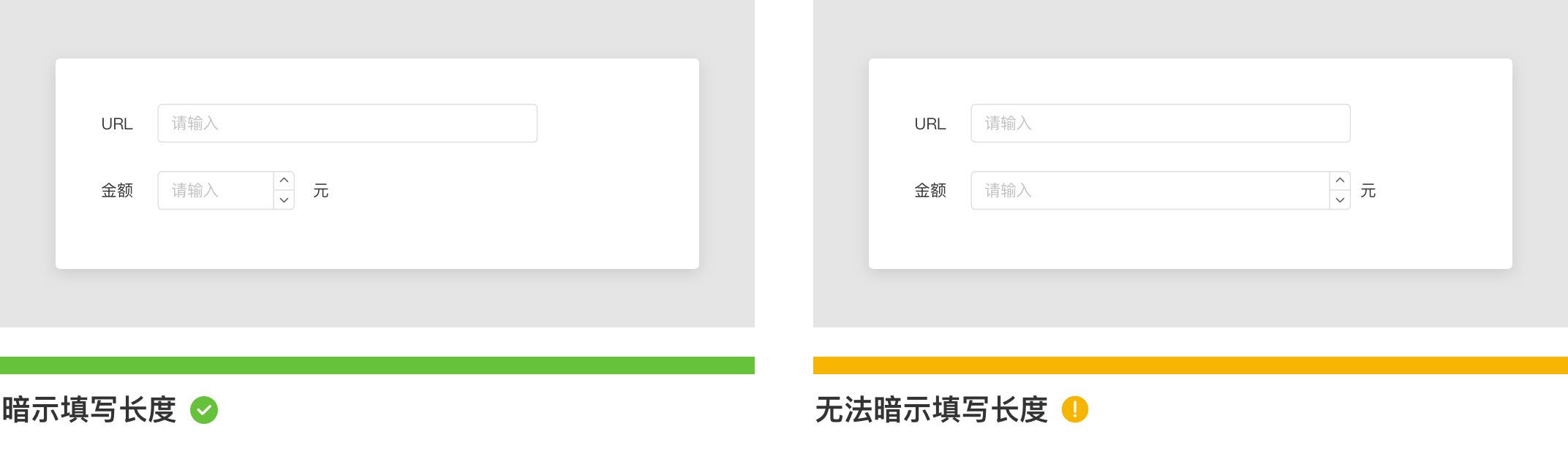 在實際業(yè)務中,設計師常常習慣把每個表單字段都設置成相同的寬度,在視覺效果上看感覺會比較統(tǒng)一,但是這種做法實際上體驗欠佳。字段的寬度應該向用戶暗示所需輸入內容的長度從而減輕判斷負擔。在Ant Design 4.0 系列分享的文章《整齊劃一?不如錯落有致》中分析到錯落有致的排版表現似乎比整齊劃一的左圖更舒適,因為在視覺上我們更容易將右圖的空間和內容視為一個和諧的整體。但左圖過度的對齊導致暗示隱性的截斷,我們慣性視覺會產生表單字段右側空間缺了一大塊的錯覺。