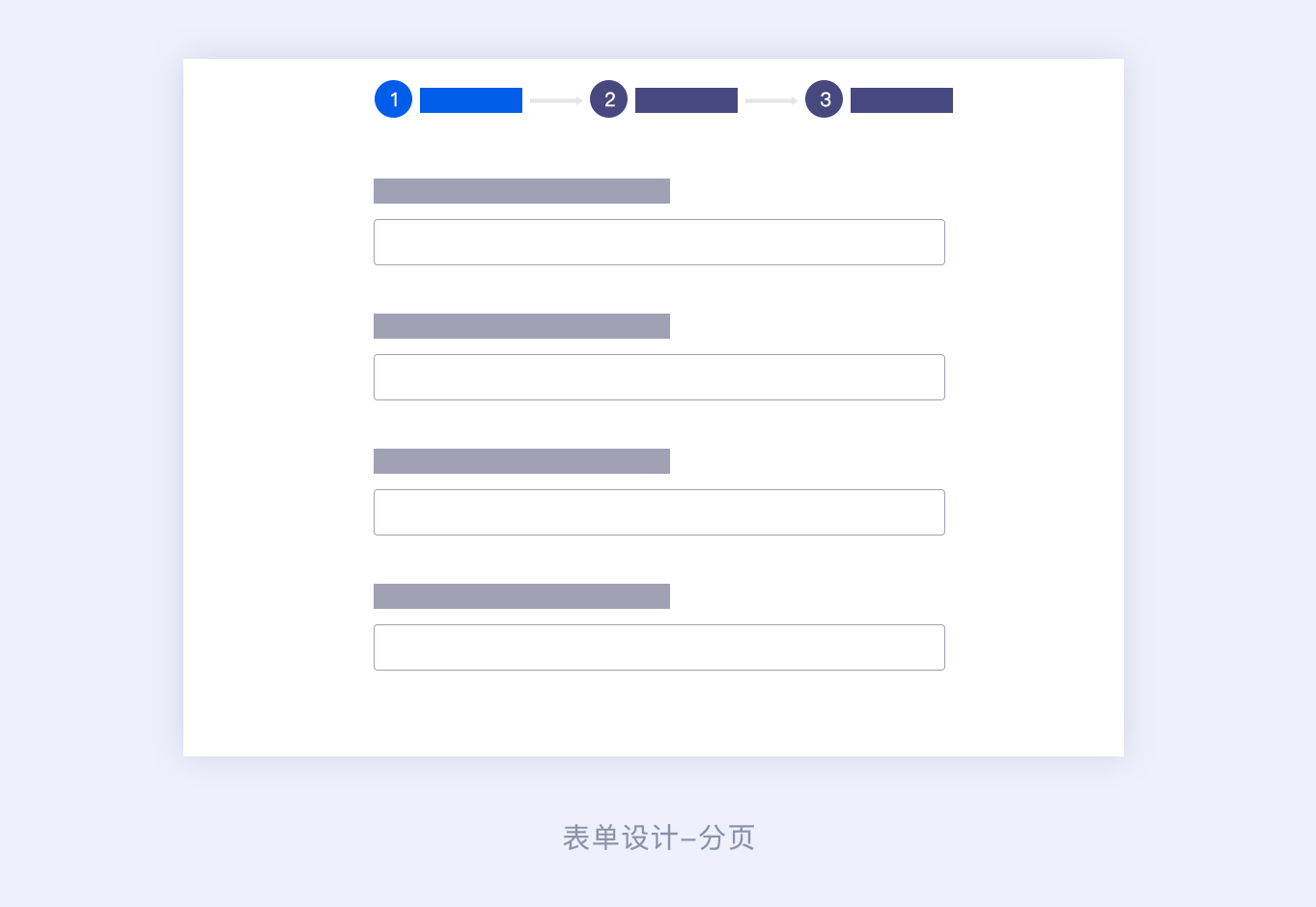 分頁(yè)表單設(shè)計(jì)一般會(huì)針對(duì)具有步驟前后順序關(guān)系的表單。也就是指需要先完成上一步表單信息才能進(jìn)入到下一步的表單頁(yè)面,形成一個(gè)完整的閉環(huán)流程才能使表單信息提交成功。