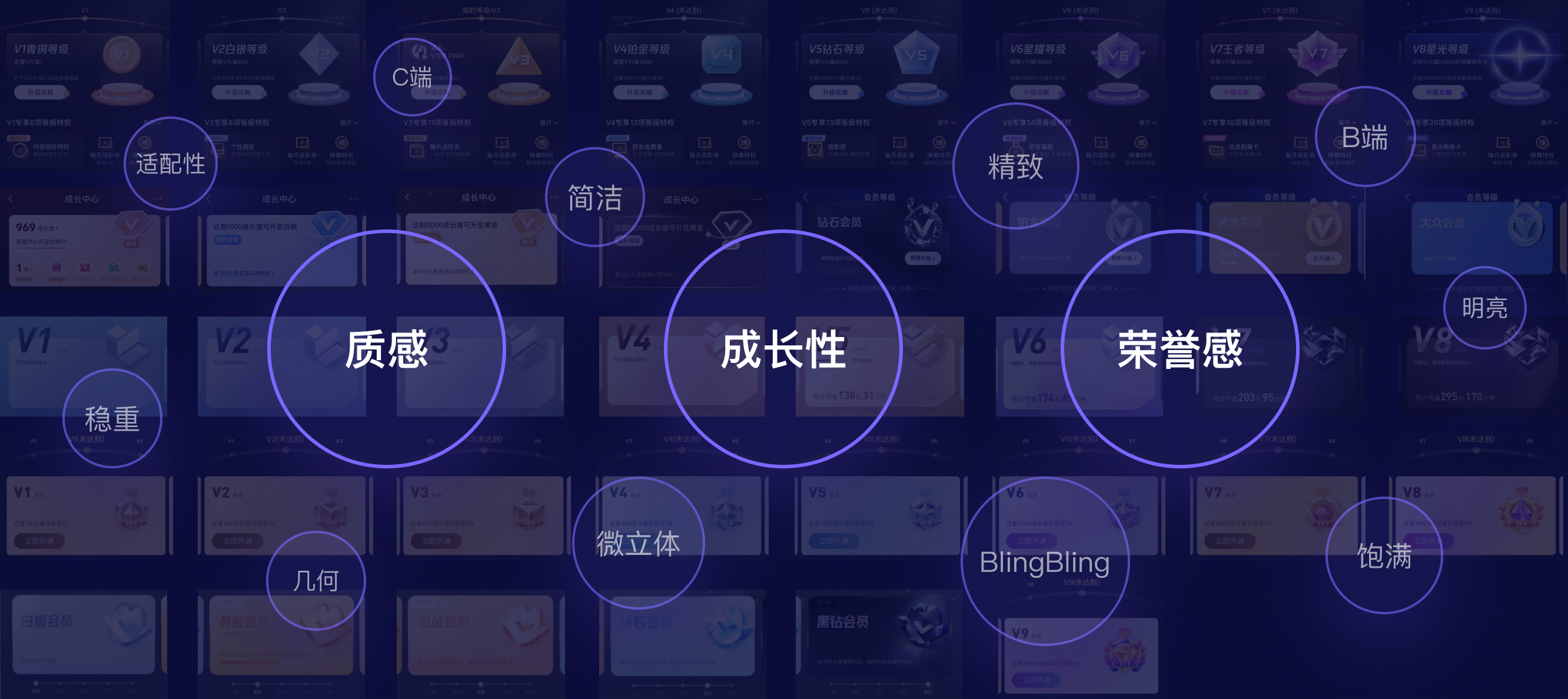 需求分析:開始設(shè)計(jì)之前,我們首先做了背景研究,了解徽標(biāo)的設(shè)計(jì)需求、目標(biāo)受眾和使用場(chǎng)景,為設(shè)計(jì)提供更準(zhǔn)確的方向。在本項(xiàng)目中,商家等級(jí)覆蓋百度商業(yè)場(chǎng)景所有B端業(yè)務(wù),所以設(shè)計(jì)風(fēng)格要考慮整體質(zhì)感和適配性;另外商家等級(jí)是一個(gè)同時(shí)面向商家和用戶兩者的體系,所以設(shè)計(jì)師需要考量雙端展現(xiàn)的異同點(diǎn);最后,商家等級(jí)特有屬性成長(zhǎng)、榮譽(yù)需要在徽標(biāo)中有所體現(xiàn)。