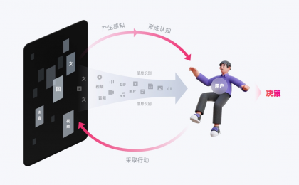 信息識別,可簡單理解為:感知到(看到/聽到)信息,并能夠理解它。本質是在用戶與界面交互中,會經(jīng)歷「感知信息→認知信息→做出決策與行動」的歷程,從感知到認知,是信息獲取和辨識理解的過程,即「信息識別」。