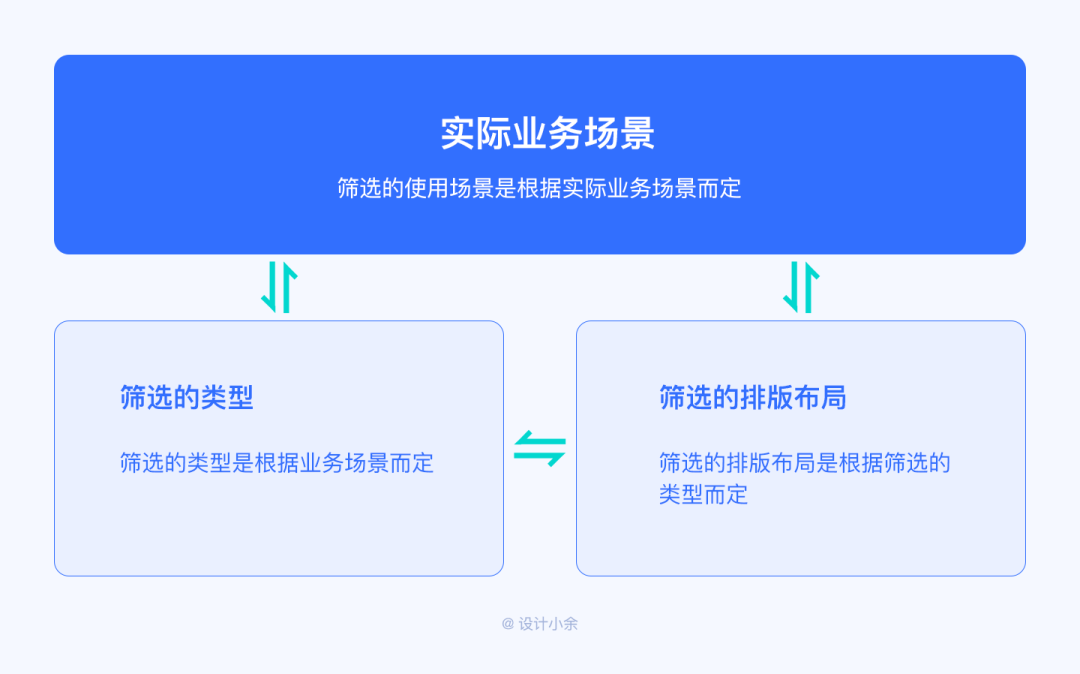 篩選的類型是根據(jù)業(yè)務(wù)場景而定,篩選的排版布局是根據(jù)篩選的類型而定,篩選的使用場景是根據(jù)實(shí)際業(yè)務(wù)場景而定,所以首先我們需要理解清楚真實(shí)的業(yè)務(wù)場景,再通過分析選擇適合的篩選類型,當(dāng)已經(jīng)知道了篩選類型,我們只需要根據(jù)篩選的條件和頁面的交互及空間利用情況選擇合適的布局方式即可。