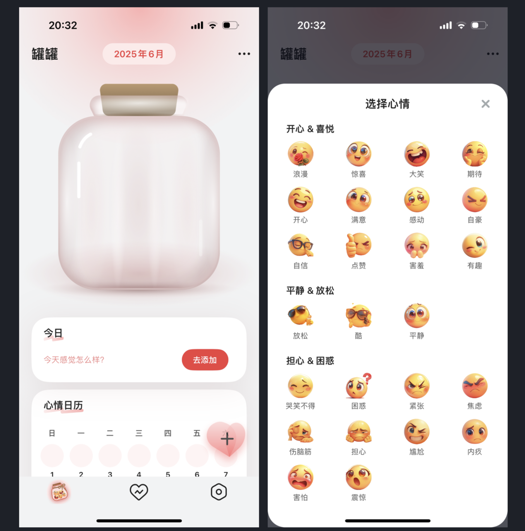 心情罐罐 App 設(shè)計獨特,用戶可通過不同表情記錄每日心情并放入 “罐罐”,如同收納幸運星。該 App 在設(shè)計、交互和動效上體驗良好,還提供心情指數(shù)、心情日歷、數(shù)據(jù)統(tǒng)計等功能,用戶可升級會員解鎖更多專屬數(shù)據(jù)。