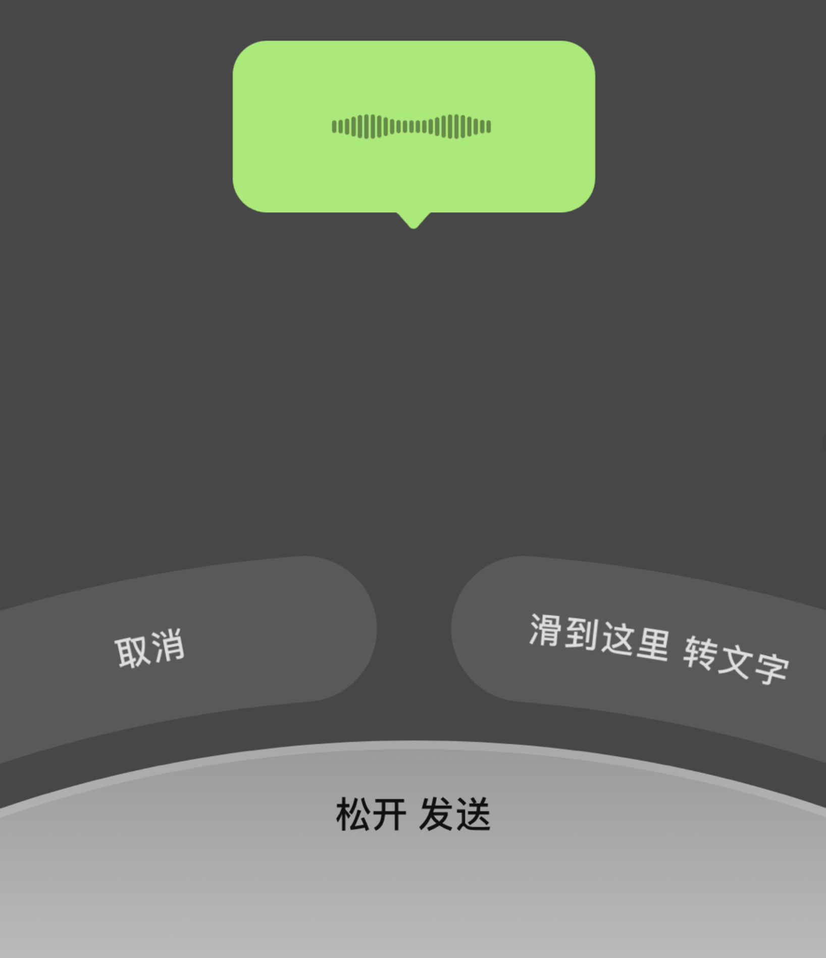微信優(yōu)化了語音發(fā)送流程的視覺表現(xiàn),操作指引更清晰人性化,如明確 “滑到這里轉(zhuǎn)文字”“松開發(fā)送”“松手取消” 等,能滿足各年齡段用戶的操作認知。