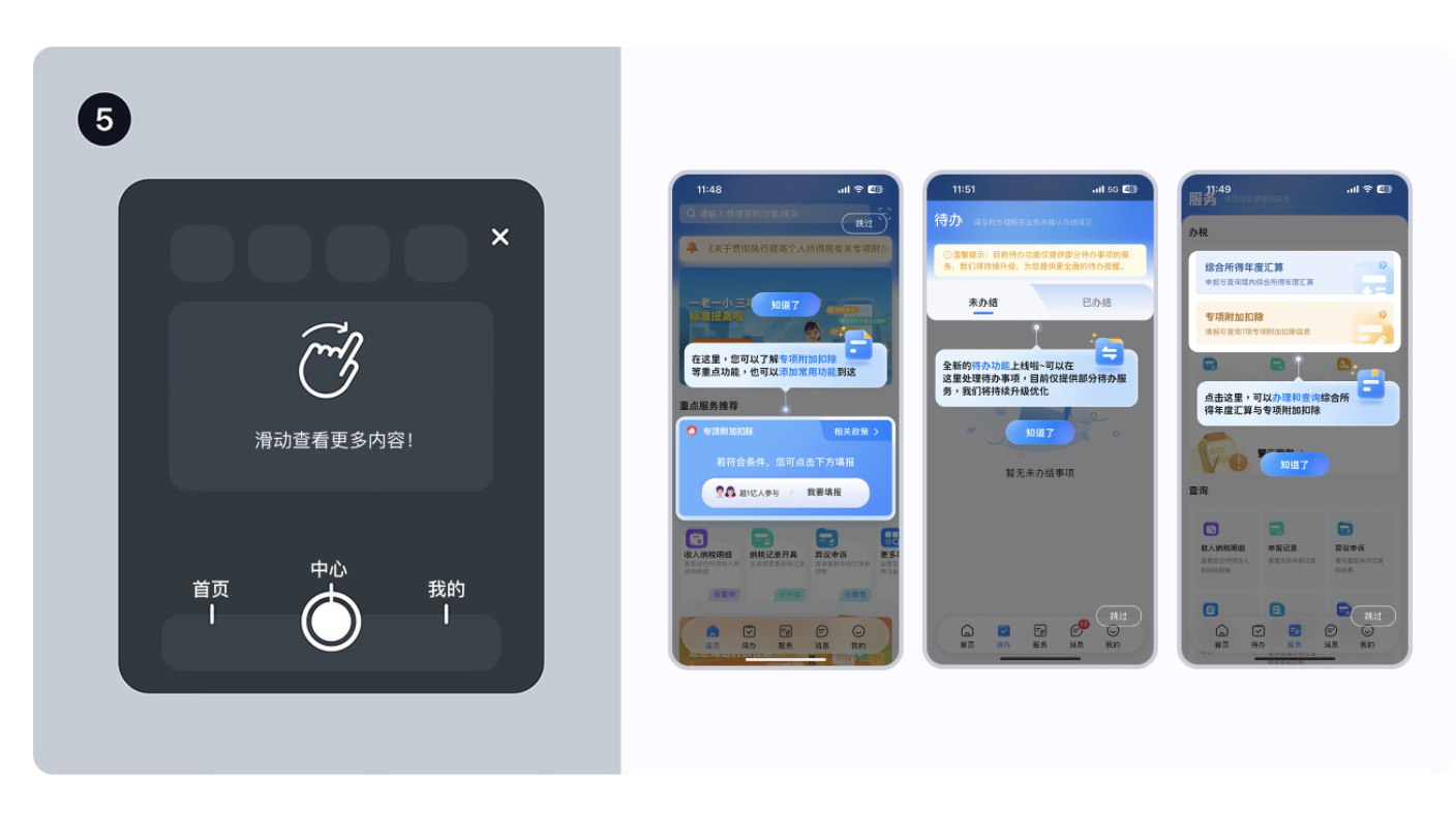 • 例子:稅務 APP 新增 “待辦功能” 后,會在 “待辦” 入口旁彈氣泡,告訴用戶 “這里能處理未辦結(jié)事項”,用戶點 “知道了” 就關閉,不影響正常使用;