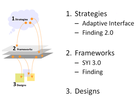 你可以從中看到自己的影響力到哪,一個(gè)設(shè)計(jì)師如果是精于designs,那你是個(gè)很好的設(shè)計(jì)助理,如果能能對(duì)frameworks提出成熟方案,那應(yīng)該是個(gè)很合格的交互設(shè)計(jì)師了,如果你對(duì)strategies有影響,甚至有一定決策權(quán),那恭喜你,你理所當(dāng)然應(yīng)該得到所有HCIer的尊重。