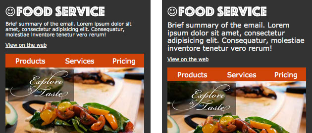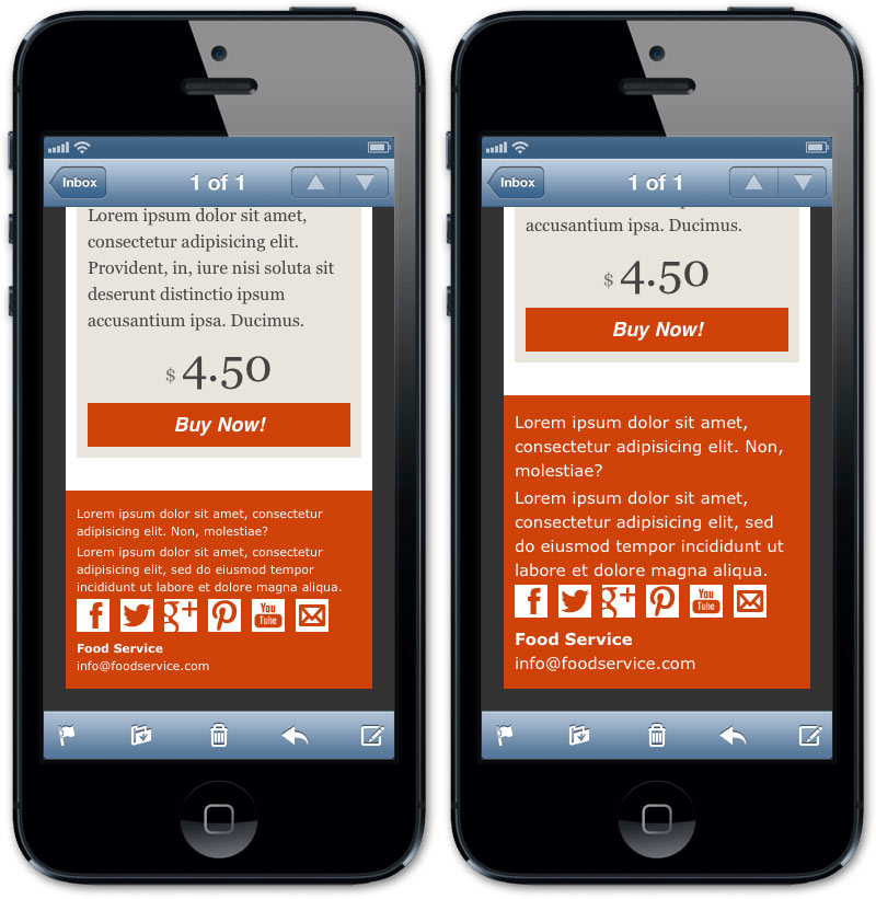 嚴(yán)禁復(fù)雜 —— 尤其是在郵件上。始終避免使用復(fù)雜的結(jié)構(gòu),否則在小屏幕上渲染時一定會失敗。請記住許多設(shè)備是不支持媒體查詢的(例如谷歌郵件),所以我們不能指望成熟的內(nèi)容重排技術(shù)。