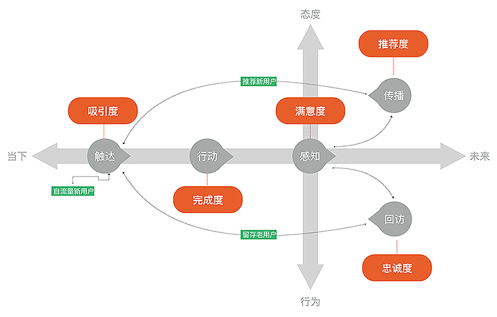 以上這3點是我們設計人員在工作中需要看數(shù)據(jù)的原因。但在設計工作中,數(shù)據(jù)使用主要關(guān)注2個方面,一個是看什么數(shù)據(jù),另一個是如何使用數(shù)據(jù)。設計師看什么數(shù)據(jù),我們根據(jù)用戶體驗設計目標與產(chǎn)品生命周期,形成了用戶體驗的“5度”模型,即吸引度、完成度、滿意度、忠誠度、推薦度。不同產(chǎn)品的5度具體指標要根據(jù)產(chǎn)品實際情況來定義,今天我就不展開來講了,詳細可以查看阿里UED博客或《U一點料》