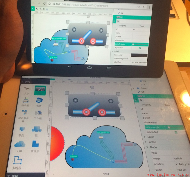 HT 提供了各種豐富的通用組件,以及復(fù)雜的拓?fù)鋱D編輯交互插件 http://www.hightopo.com/guide...,用戶分分鐘可以快速開發(fā)出各種各樣的編輯器工具。入門手冊(cè)中也有個(gè) http://www.hightopo.com/guide... 簡單的編輯器例子,教用戶如何自定義創(chuàng)建節(jié)點(diǎn)、連線和多邊形的示例教材,學(xué)習(xí)自定義拓?fù)鋱D交互可從此例子入手。