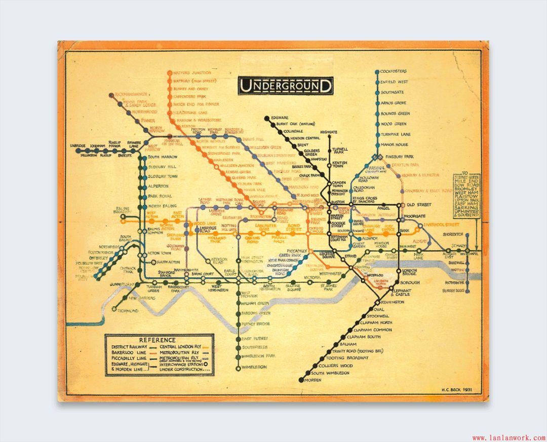 說(shuō)到英格蘭,信息圖表歷史上的一大步是在1933年,當(dāng)時(shí)哈里貝克創(chuàng)建了倫敦地鐵的第一張地圖,只顯示了描繪公共交通路線和車(chē)站的線路。這是一個(gè)重要的發(fā)展,因?yàn)樗鼘⒁曈X(jué)圖表移動(dòng)到日常生活中。