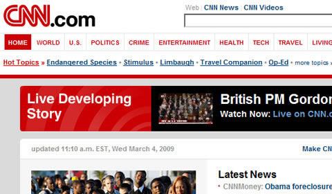 繼續(xù)關(guān)注新聞?wù)军c, CNN 在字體大小寫上缺少變化來平衡頁面。導(dǎo)航條是全部大寫的,但頁面中的其余部分則很傳統(tǒng)地幾乎全部采用了首字母大寫。