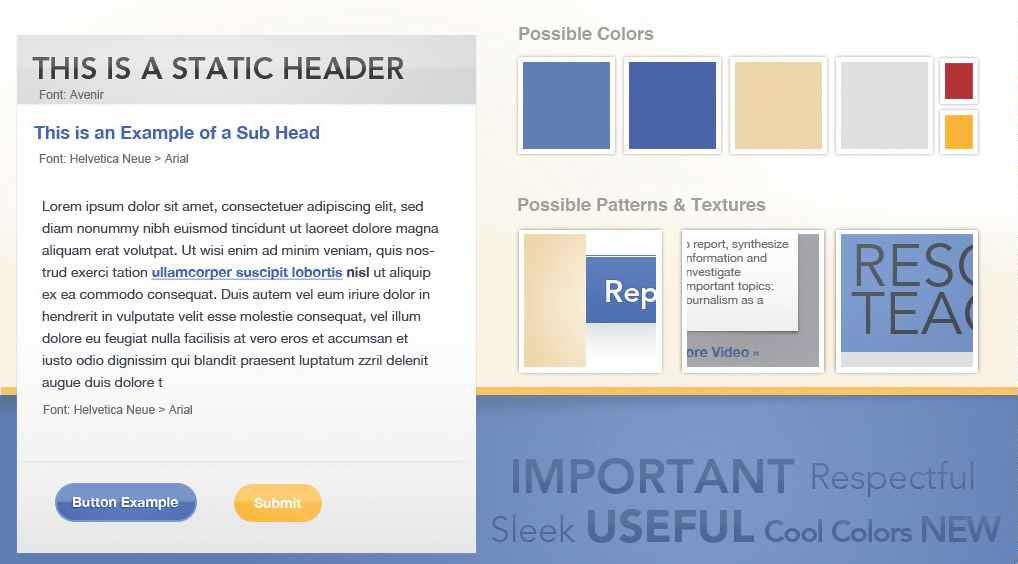 介紹網(wǎng)站所使用的文字排印方案,包括字體風(fēng)格、選取這些字體的理由等。這里還要通過一些具有代表性的具體圖示來介紹字體風(fēng)格與頁面上下文環(huán)境之間的關(guān)系。