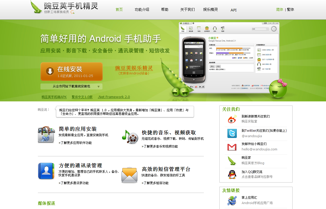 舊版和新版,適合了不同時期豌豆莢手機精靈推廣的需要。當(dāng)拓展開市場之后,產(chǎn)品就要好的足以打動人,吸引不斷的去下載、使用,蘋果的網(wǎng)站也是如此?;睘楹啠恋罒o難。