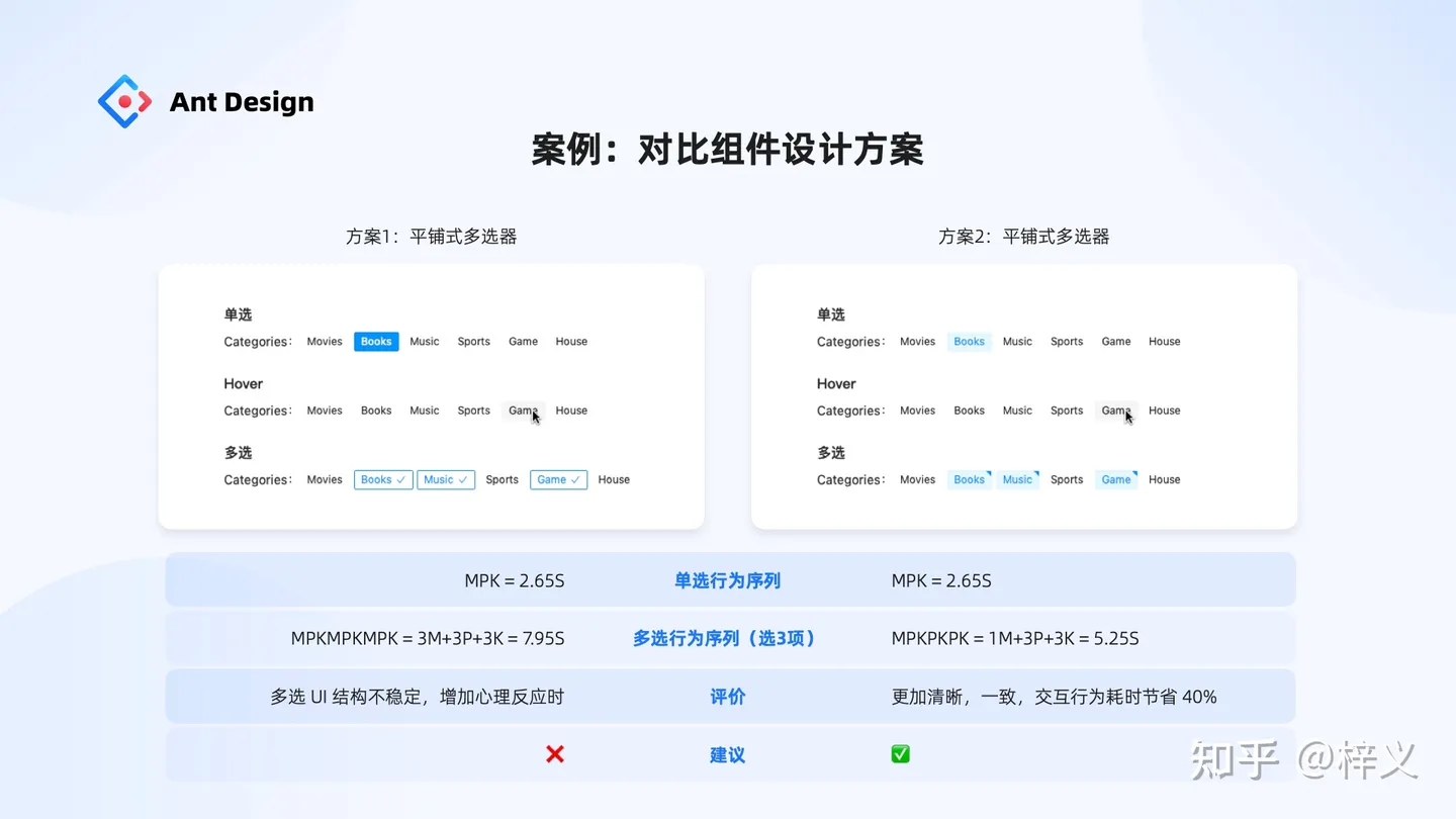 滿足一個(gè)「行為目的」可以有千萬(wàn)種組件解決方案,那么哪種方案是最適合成為規(guī)范的呢?接下來第二部分就會(huì)跟大家分享如何評(píng)估組件方案的好壞。